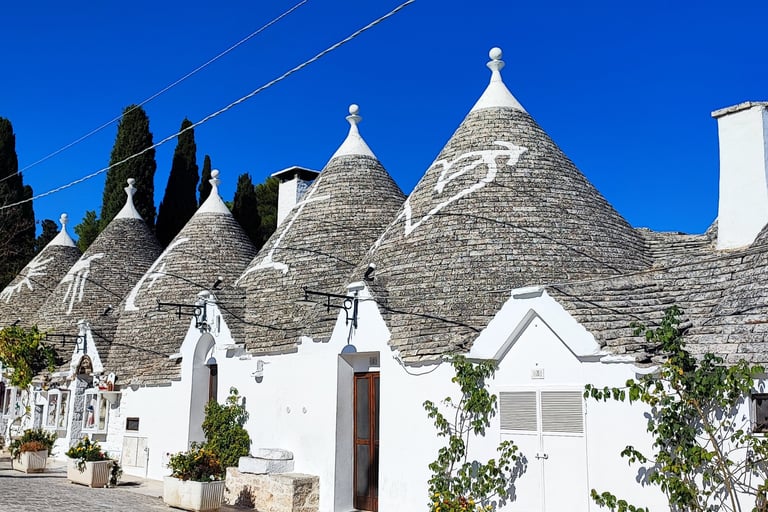 Alberobello, au cœur des Pouilles, est célèbre dans le monde entier pour ses trulli, ces habitations typiques aux toits coniques, construites en pierre calcaire locale sans utilisation de mortier. Cette technique de construction remonte à plusieurs siècles et fait d'Alberobello un lieu unique et fascinant. Les trulli, aujourd'hui classés au patrimoine mondial de l'UNESCO, sont le symbole d'une tradition rurale et d'une culture ancienne. En se promenant dans les rues du quartier de Rione Monti, on peut admirer l’artisanat local et déguster les saveurs de la cuisine des Pouilles, comme l'huile d'olive, les taralli et les vins locaux.